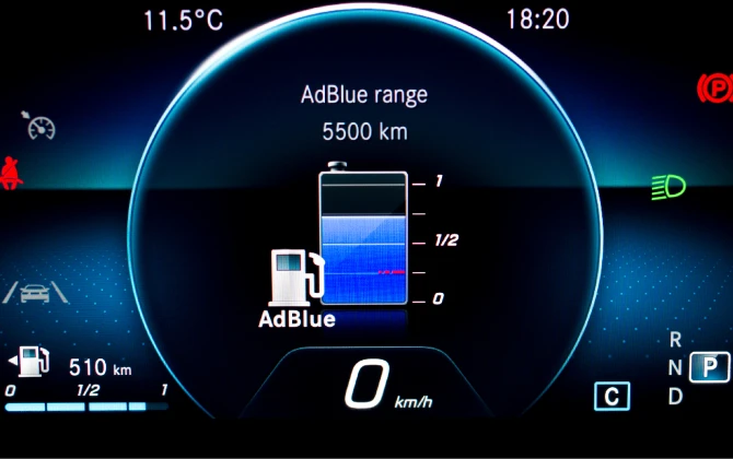 AdBlue®が10%程度になると運転席のAdBlue®メーターがエンプティを警告します。