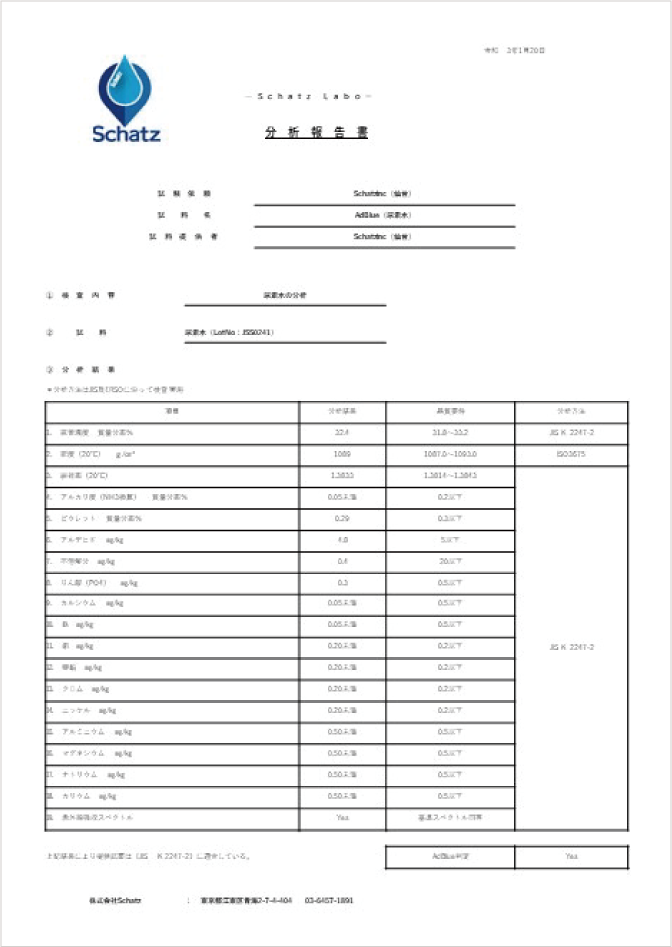 AdBlue®は、使用する純水の電気伝導率や使用原料のビューレットやアルデヒドの含有量の規定があり、VDA(ドイツ自動車工業会)で決められた原料・純水基準を順守しながら車両への悪影響のない尿素水を製造しています。又、出来上がったAdBlue®は1バッチ(循環できる全容器容量)ごとに毎回自社のLabo(検査機関)にて検体検査を実施しAdBlue®の規定数値に適合しているかを確認し出荷しております。その意味でAdBue®は高品質と言われています。